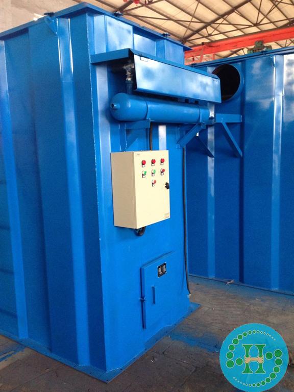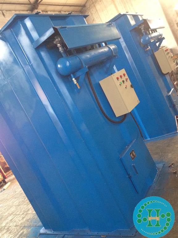 該設備與機械振動式倉頂除塵器相比,還具有工作噪音小,濾袋使用壽命長,無機械運動磨損等特點,適宜布置在各種粉料儲存庫的頂部,用于捕集各種細小干燥的非纖維性粉塵,是簡庫除塵的設備。當含塵空氣由除塵設備底部進入除塵箱中,顆粒較粗的粉塵靠其自身的重力向下沉降,落入灰倉,細小粉塵通過各種效應被吸附在濾袋的粉塵。