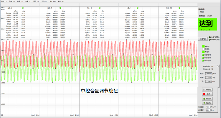 旋扭旋轉(zhuǎn)的過(guò)程中一個(gè)卡位一個(gè)卡位(也稱齒)的手感,實(shí)際上是旋鈕的扭力變化,明顯的卡位點(diǎn)是扭力的峰值點(diǎn),一個(gè)旋鈕旋轉(zhuǎn)一圈的過(guò)程中,可能設(shè)計(jì)有4個(gè) 6個(gè) 12個(gè) 16 甚至24個(gè)卡住,對(duì)應(yīng)的有24個(gè)扭力的峰值;其扭力特點(diǎn)有力小,測(cè)量對(duì)同軸度要求高等特點(diǎn)。對(duì)數(shù)據(jù)測(cè)量精度、響應(yīng)、治具的要求提出非常高的要求。我司針對(duì)該類產(chǎn)品的實(shí)驗(yàn)室、產(chǎn)線全檢測(cè)試需求開發(fā)出了一套完整的解決方案。