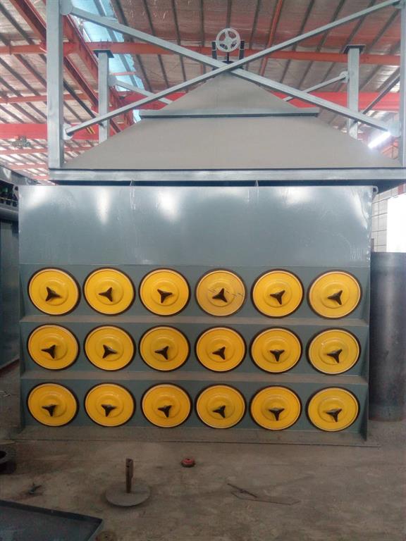 濾筒在除塵器中的布置很重要,既可以垂直布置在箱體花板上,也可以傾斜布置 在花板上,從清灰效果看,垂直布置較為合理?;ò逑虏繛檫^濾室,上部為氣箱脈沖室。在除塵器入口處裝有氣流分布板。
